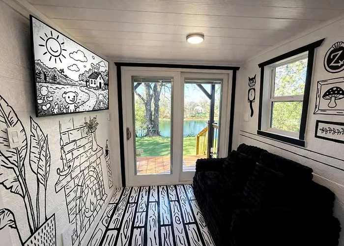 Whimsical Lakefront Tiny Home With Hand-Drawn Doodle Design Near Bastrop, Texas